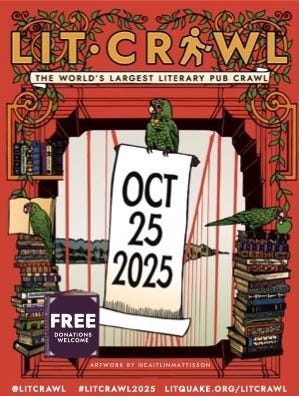 Of course, Litquake famously culminates in Lit Crawl, which is just what it sounds like: a massive literary bar crawl through the Mission.